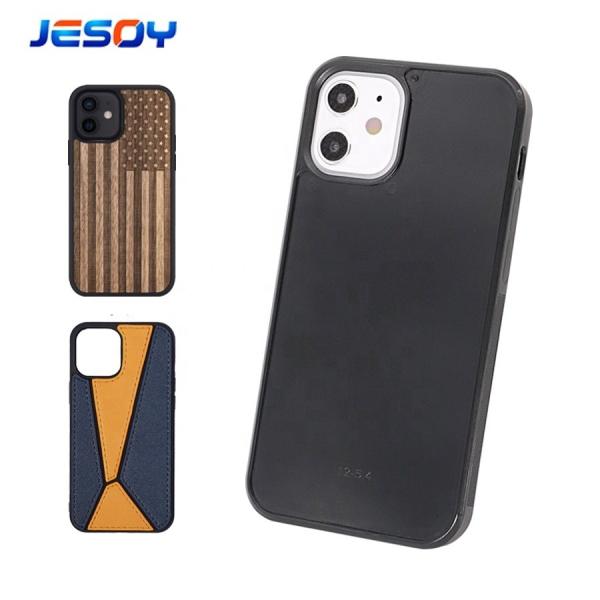 Shockproof Groove Phone Case Inlay Leather Wood Blank Mobile Cover For IPhone Images |